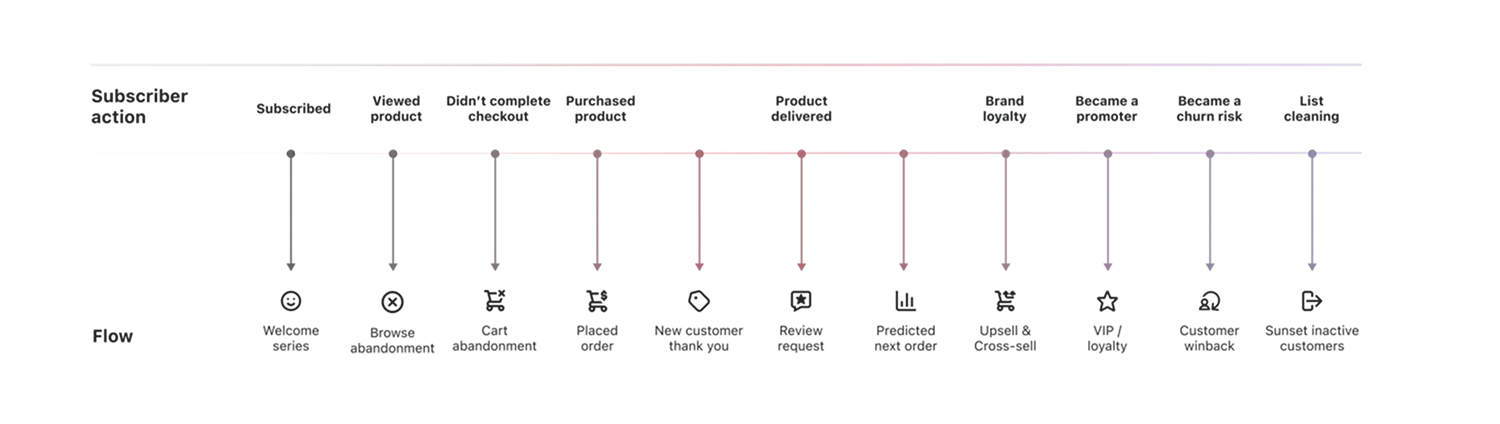 Your customers move through stages: from first subscribing, browsing products, adding to cart, making a purchase, to becoming loyal repeat buyers. Klaviyo allows you to deliver timely, personalized emails at every stage.
