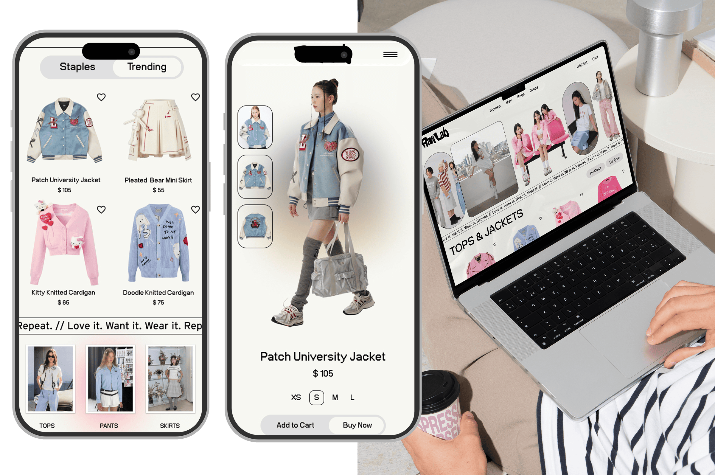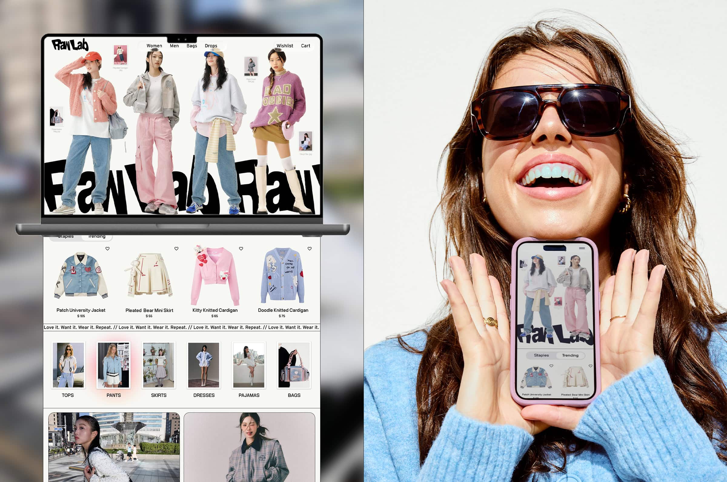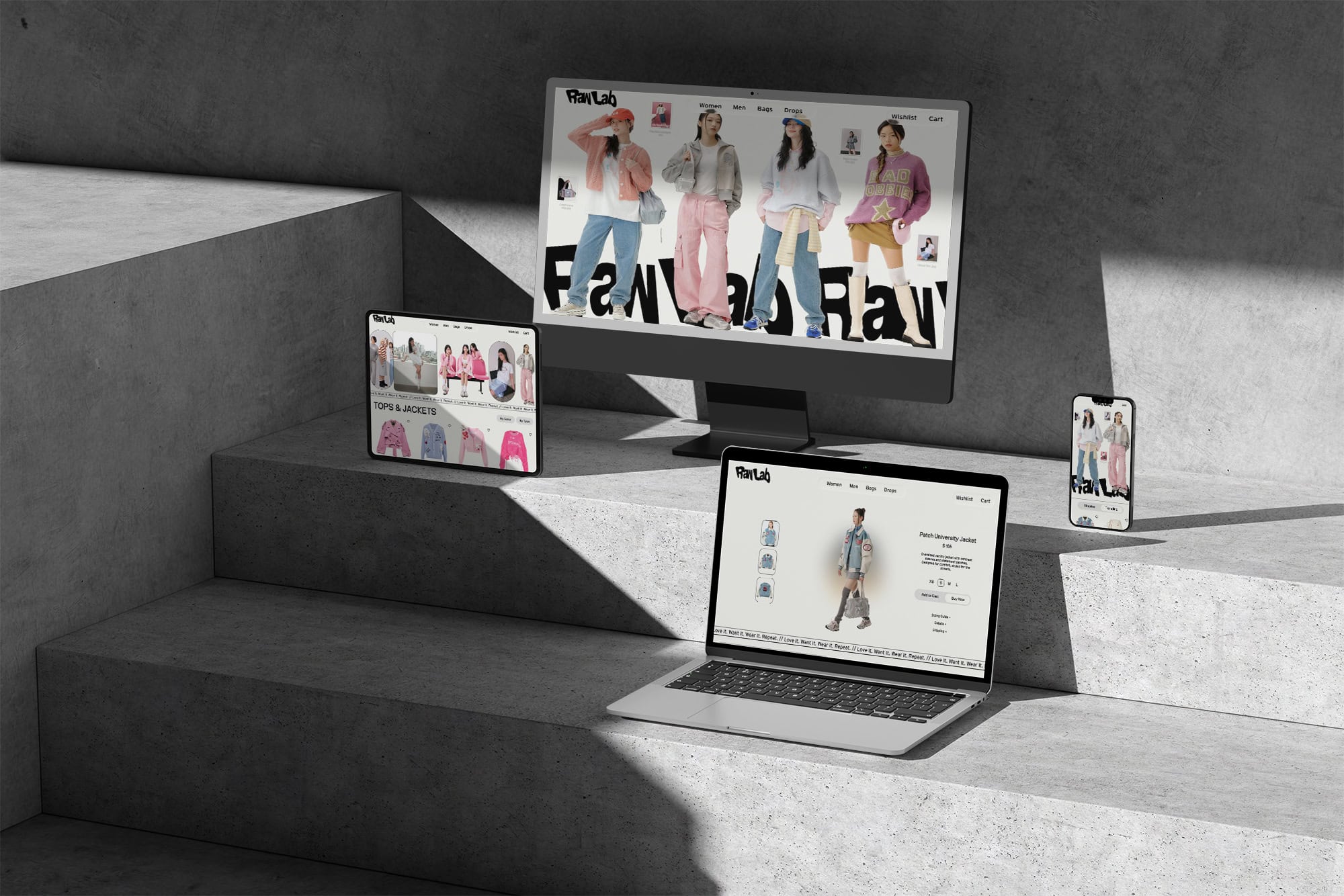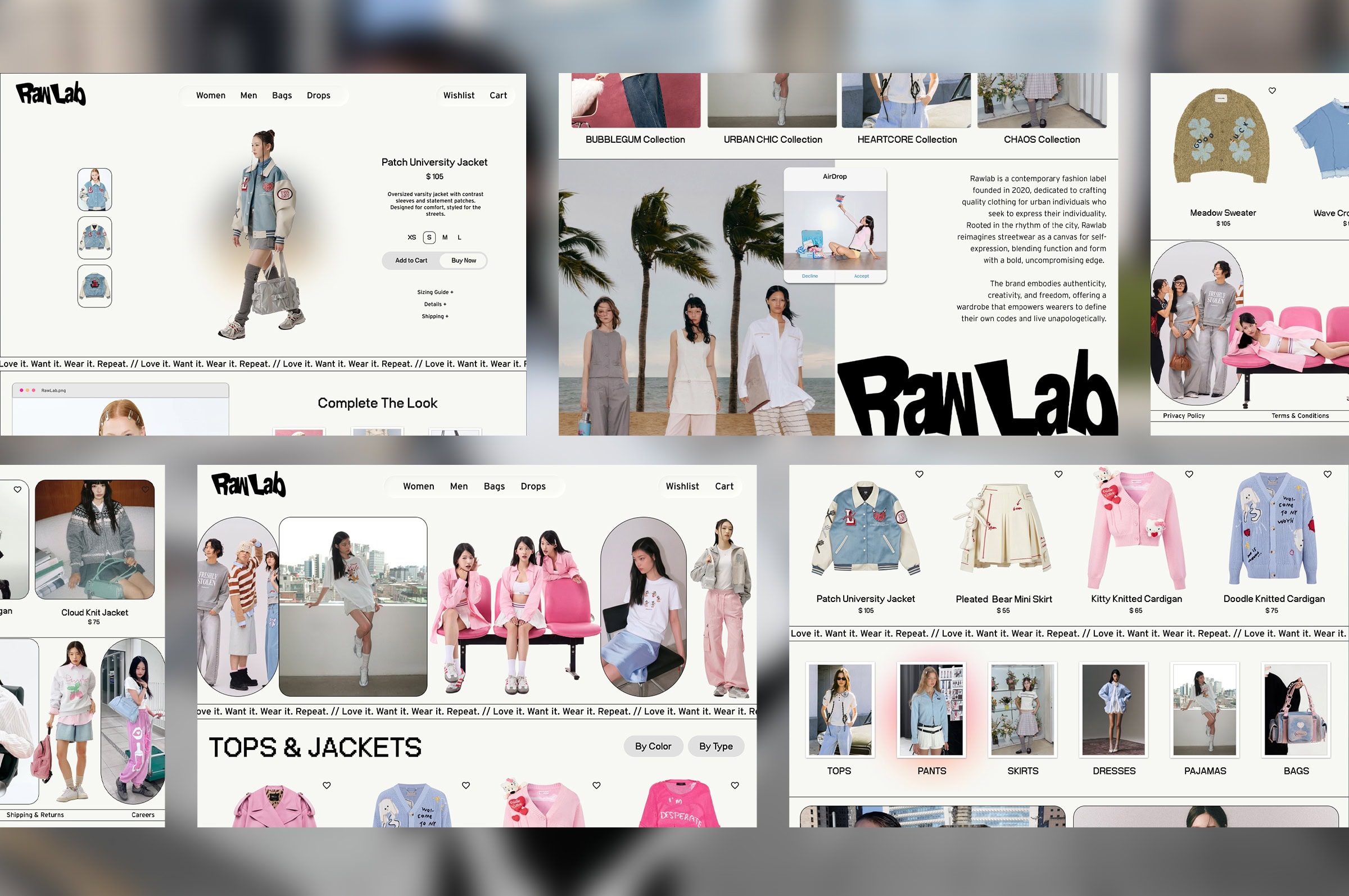Rawlab’s concept website blends fashion magazine aesthetics with a social feed and shopping platform. Playful, avant-garde design, striking photography, and interactive micro-animations create a confident, globally appealing experience that captivates visitors.